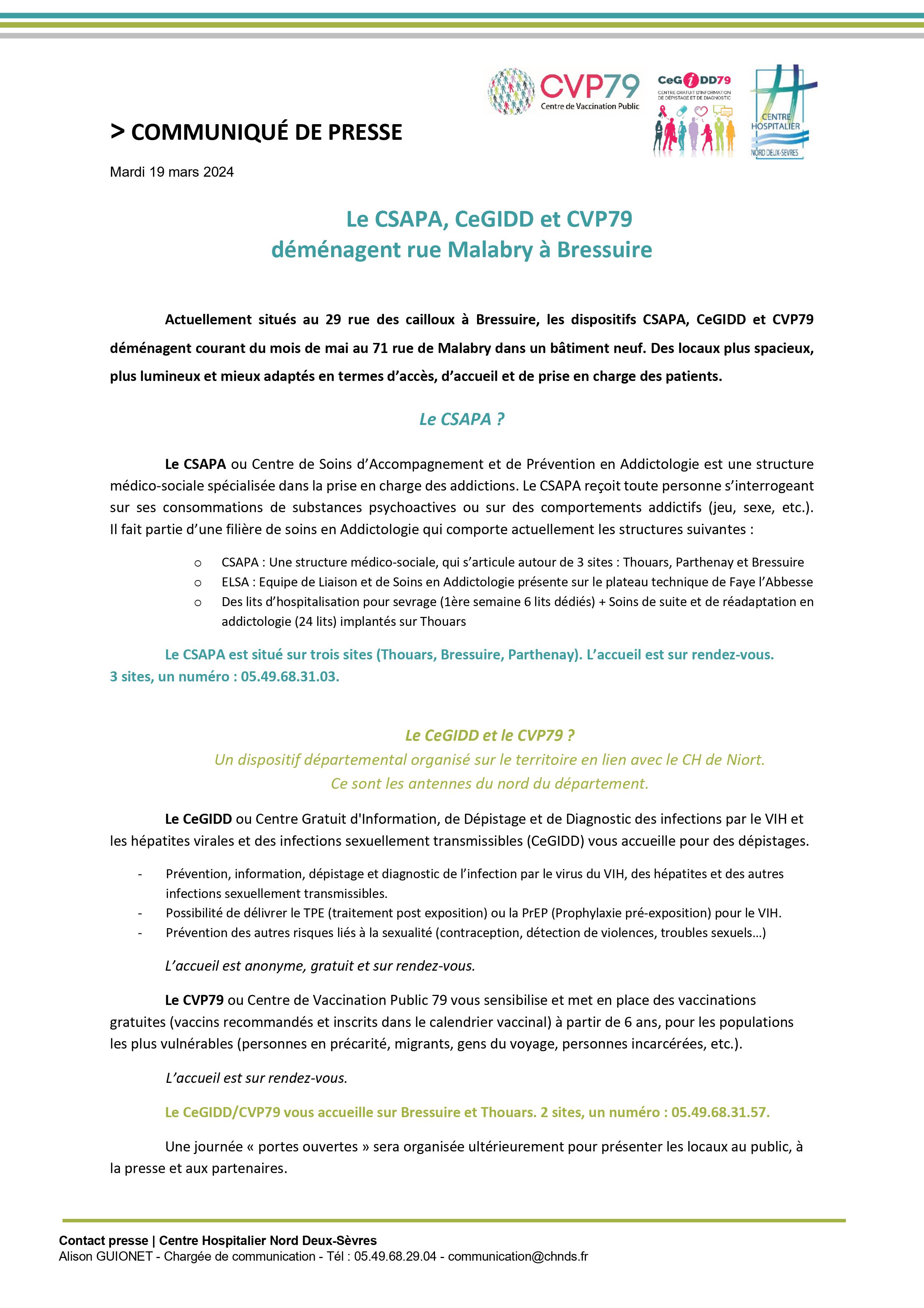 Les dispositifs CSAPA, CeGIDD et CVP79 déménagent