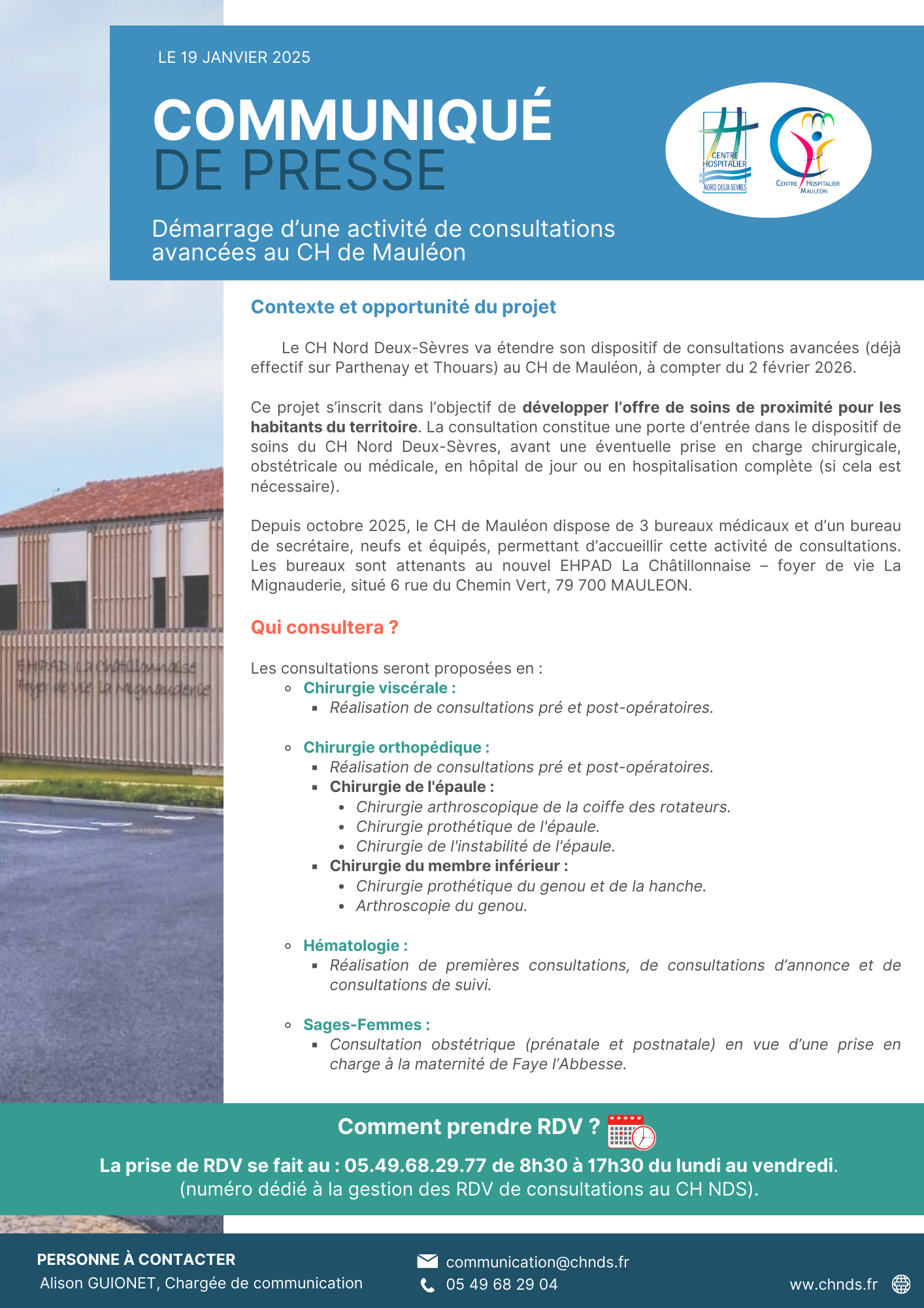 Démarrage d’une activité de consultations avancées au CH de Mauléon