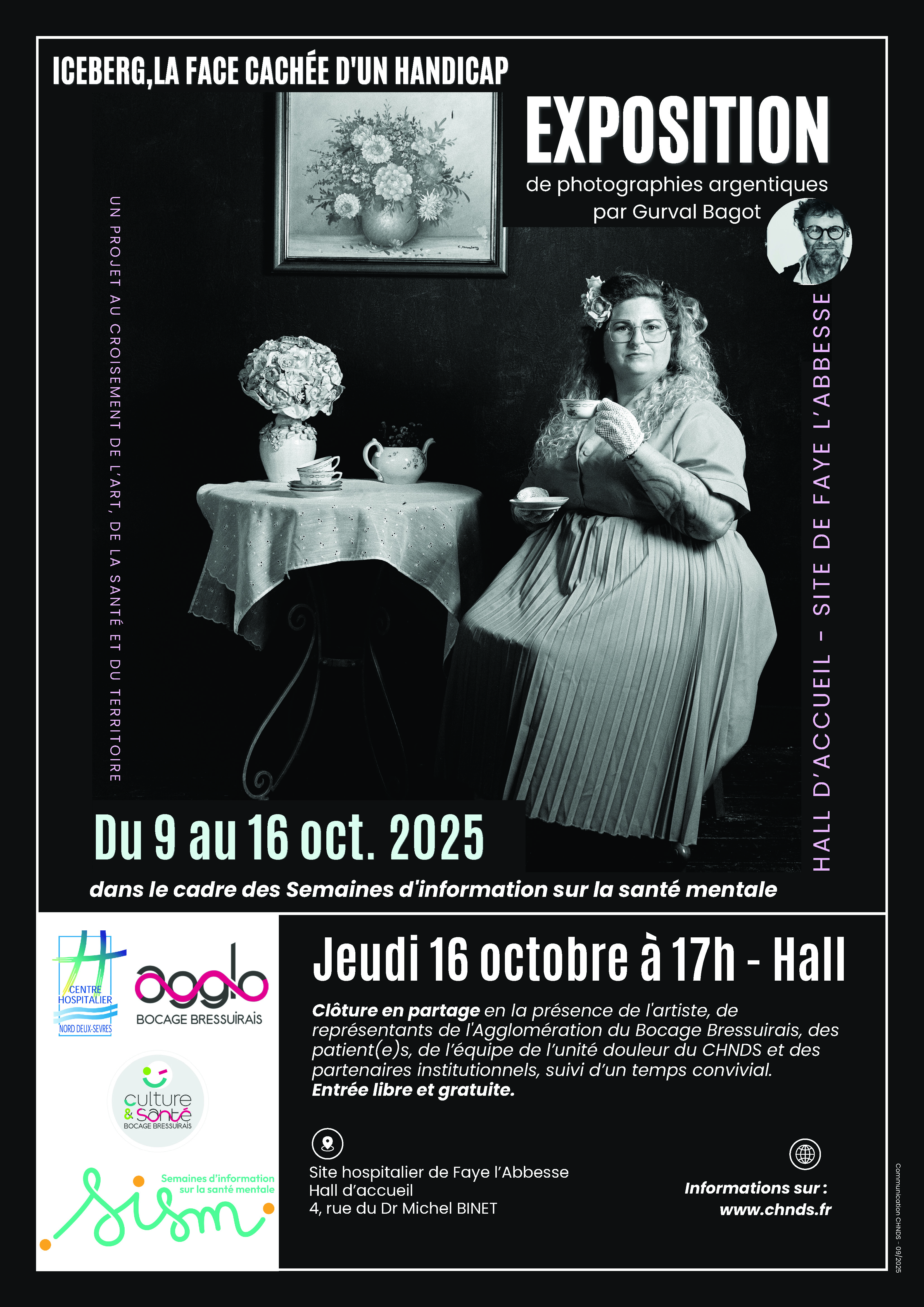 Le Centre Hospitalier Nord Deux-Sèvres est heureux d’accueillir l’exposition ICEBERG, la face cachée d’un handicap de l’artiste Gurval Bagot, un projet singulier à la croisée de l’art, de la santé et du parcours de vie.