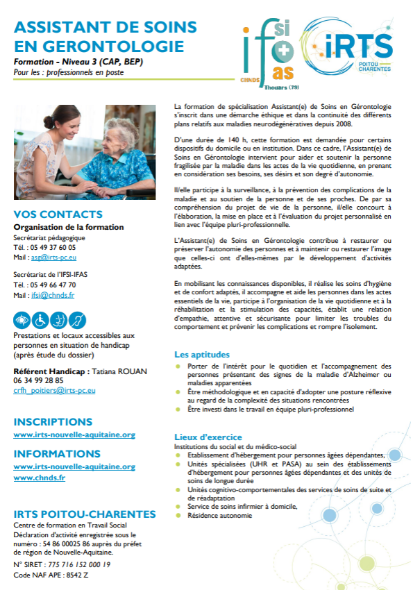 Infos auprès de asg@irts-pc.eu ou ifsi@chnds.fr