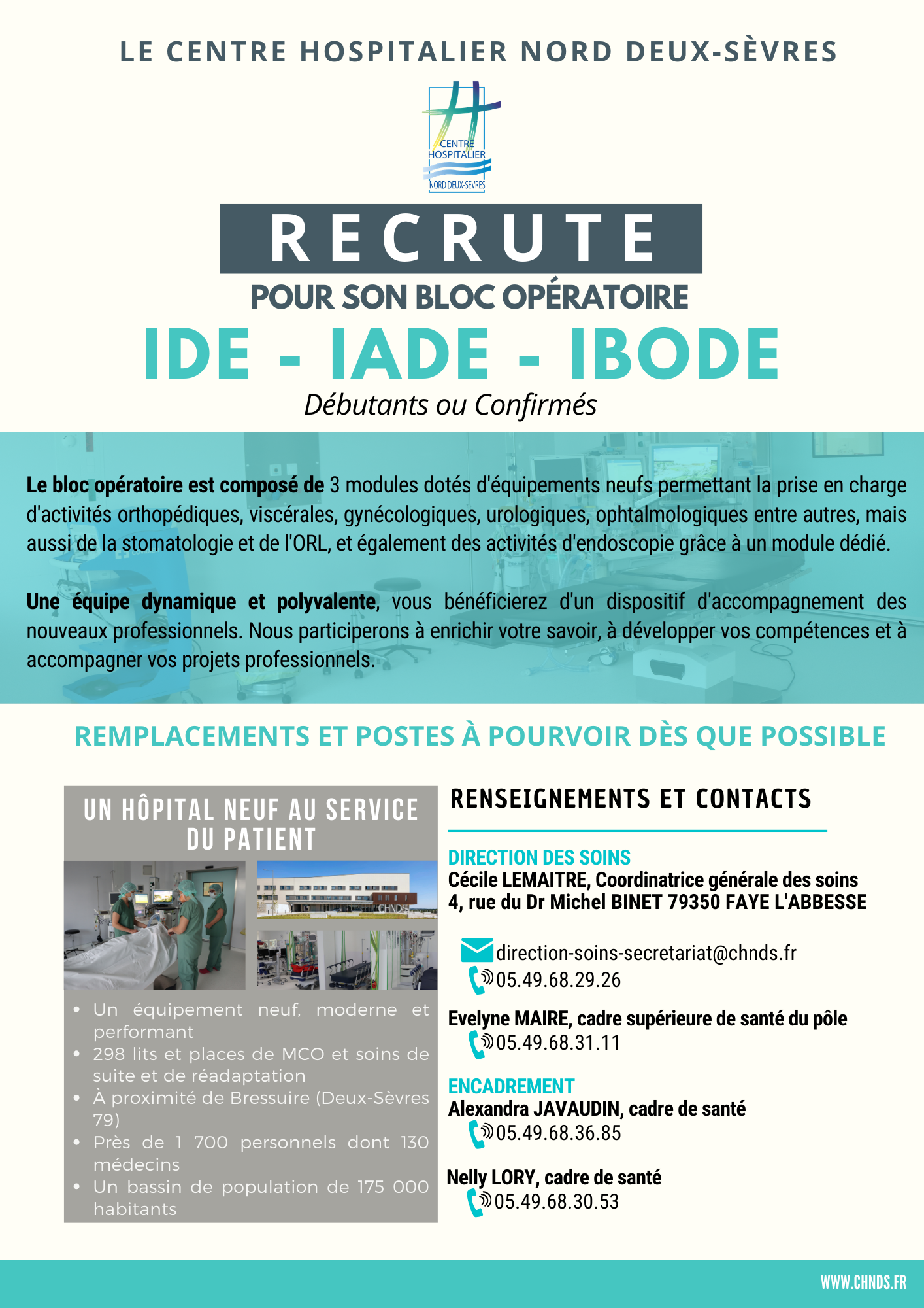 | Infirmier de Bloc Opératoire Diplômé d'Etat & Infimier Diplômé d'Etat (H/F) - Bloc opératoire (Faye l'Abbesse) |